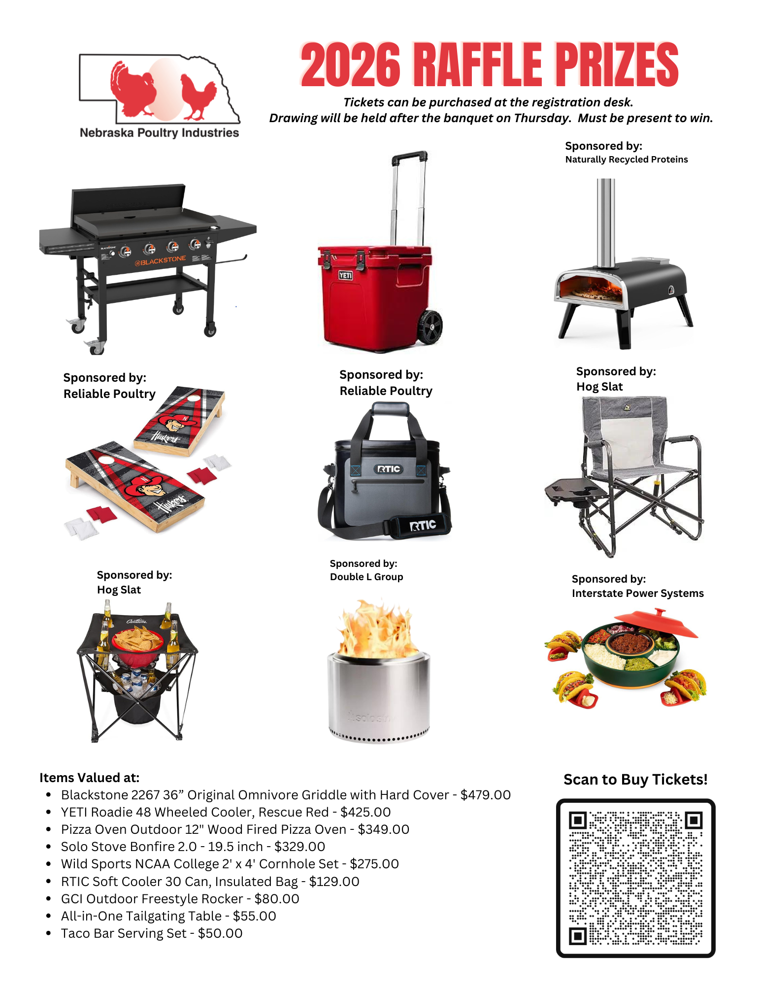 Companies have the option to bring and donate their own raffle prizes, donate to the purchase of raffle prizes, or select a specific pre-determined prize to sponsor. When registering online, add a “Raffle Prize Donation” to your cart, totaling the amount you would like to donate.